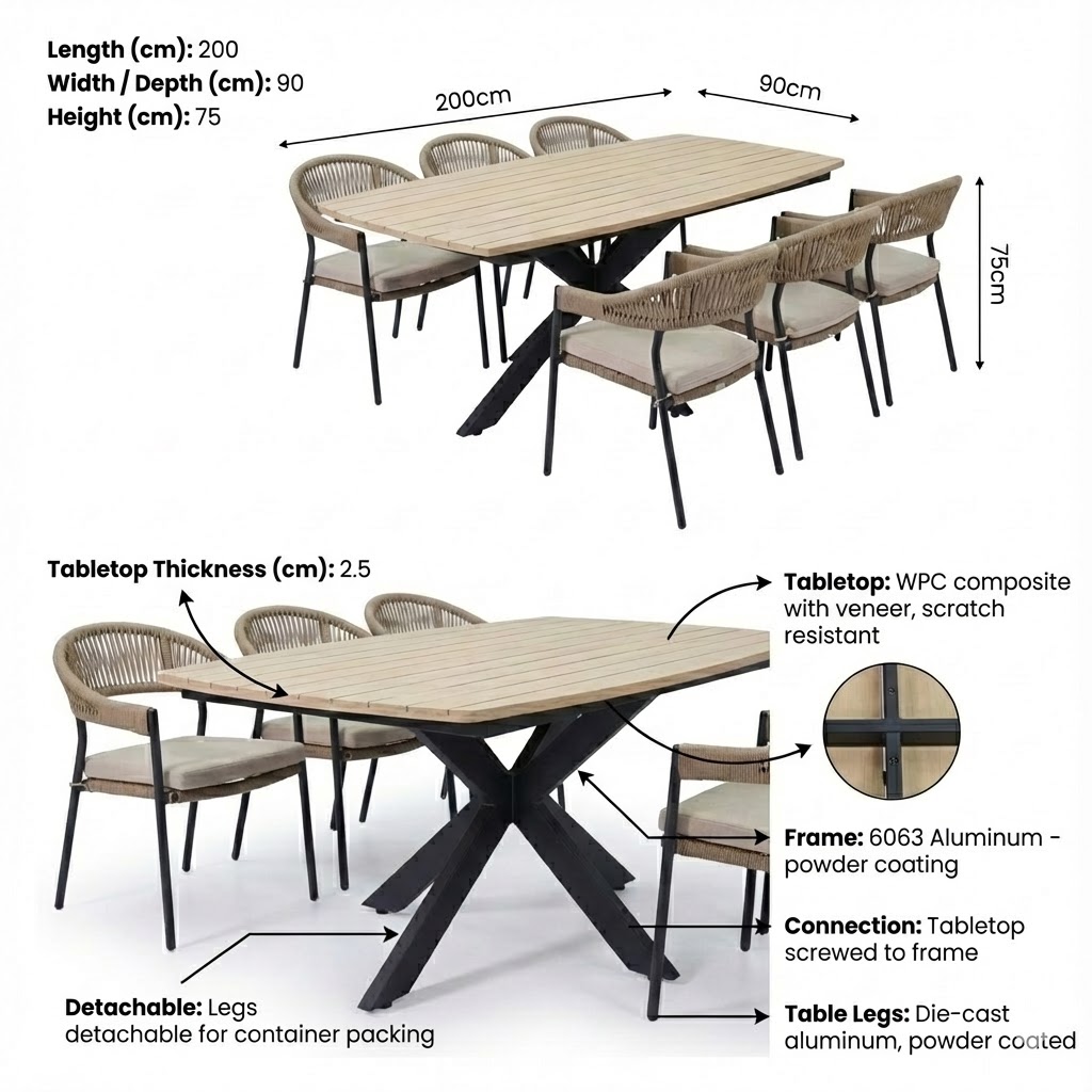 Table legs: Solid cast aluminum, powder-coated
