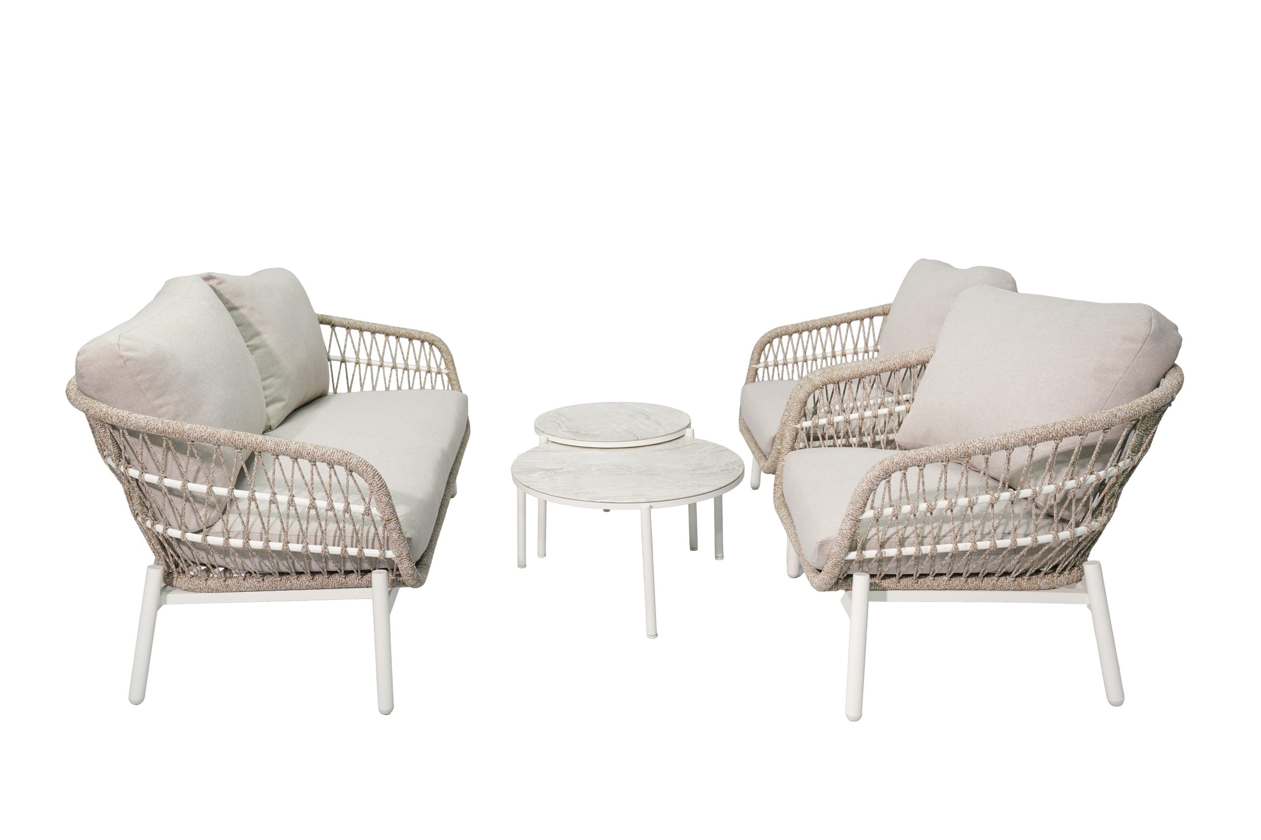 Modern Outdoor Aluminum Sofa Set with Painted Glass Tables – Patio Lounge Set