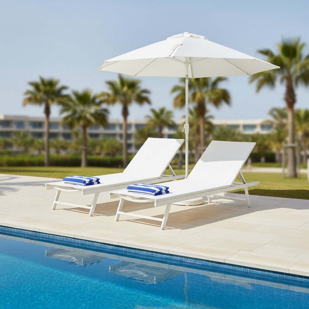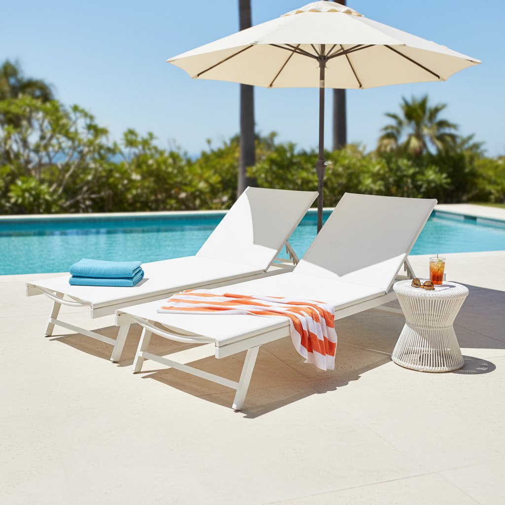 Premium White Aluminum Sling Chaise Lounge
